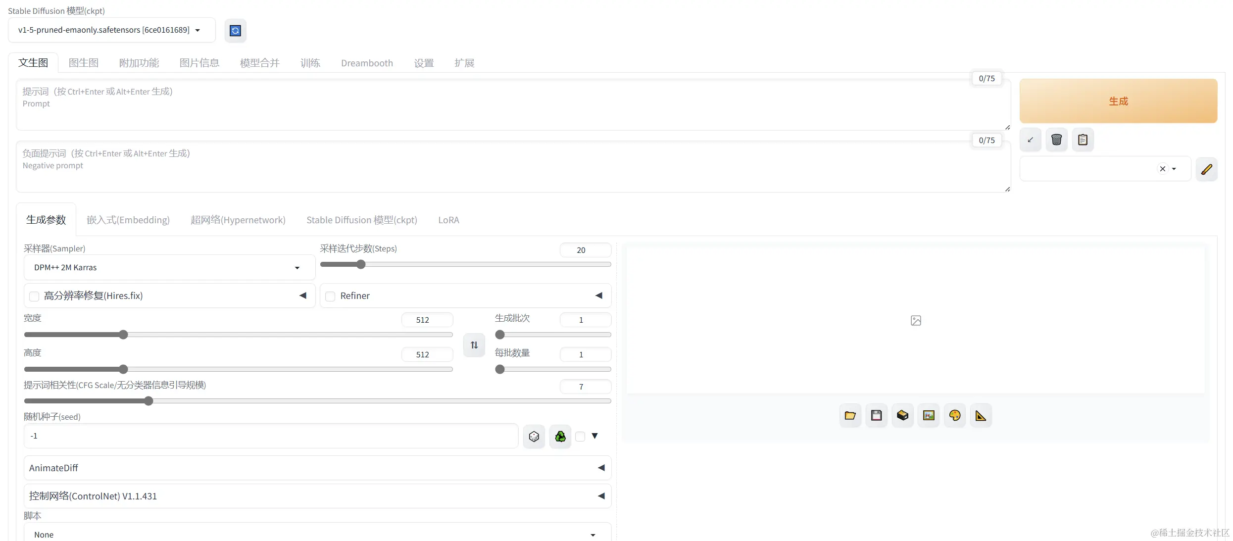 stable diffusion目前是AI绘画主流技术。在web ui选择大模型,然后输入提示词prompt就可以一键生成自己想要的图片内容。这无疑降低了stable diffusion的技术门槛,使用者不用再过多地关注代码和AI理论层级的东西。