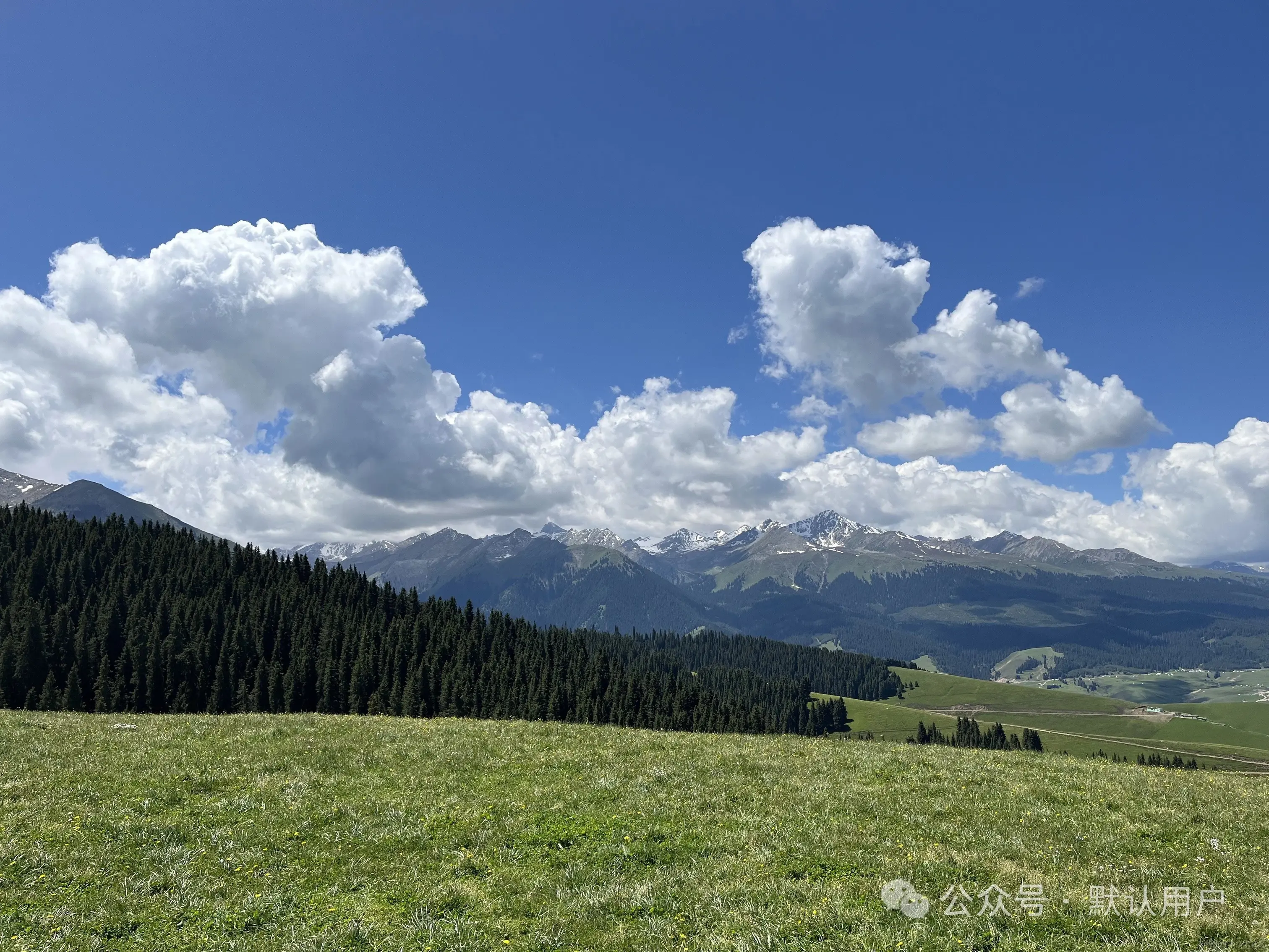 在市区住了一晚之后第二天就去恰西,恰西环线还没有完全开通,只能从游客中心开到烈士墓然后折返。不建议新手自驾开这段路,路况不是很好,甚至有很多涉水的地方。恰西就是和赛里木湖完全不一样的风景,远处有雪山,有大片的雪岭云杉,有大片的草原,有溪流。返程往巩留县开的路上风景也是一绝,湖泊,村庄,溪流,草原,落日。