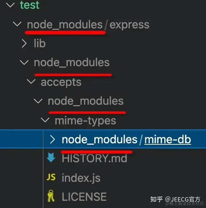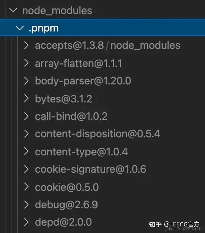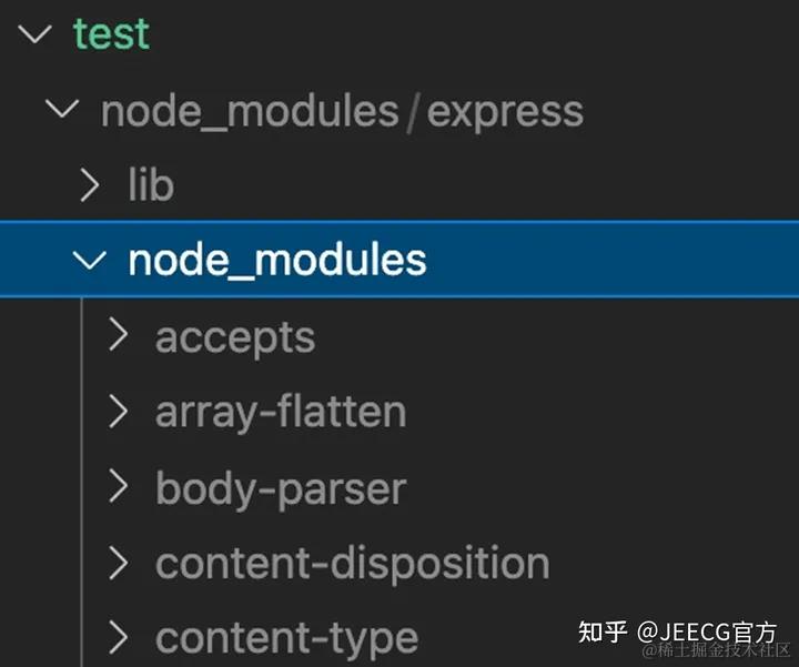 确实不是扁平化的了,依赖了 express,那 node_modules 下就只有 express,没有幽灵依赖。