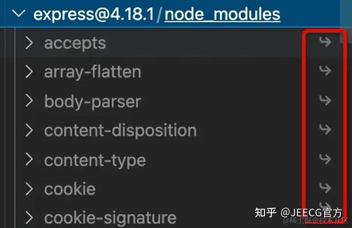 比如 .pnpm 下的 expresss,这些都是软链接: