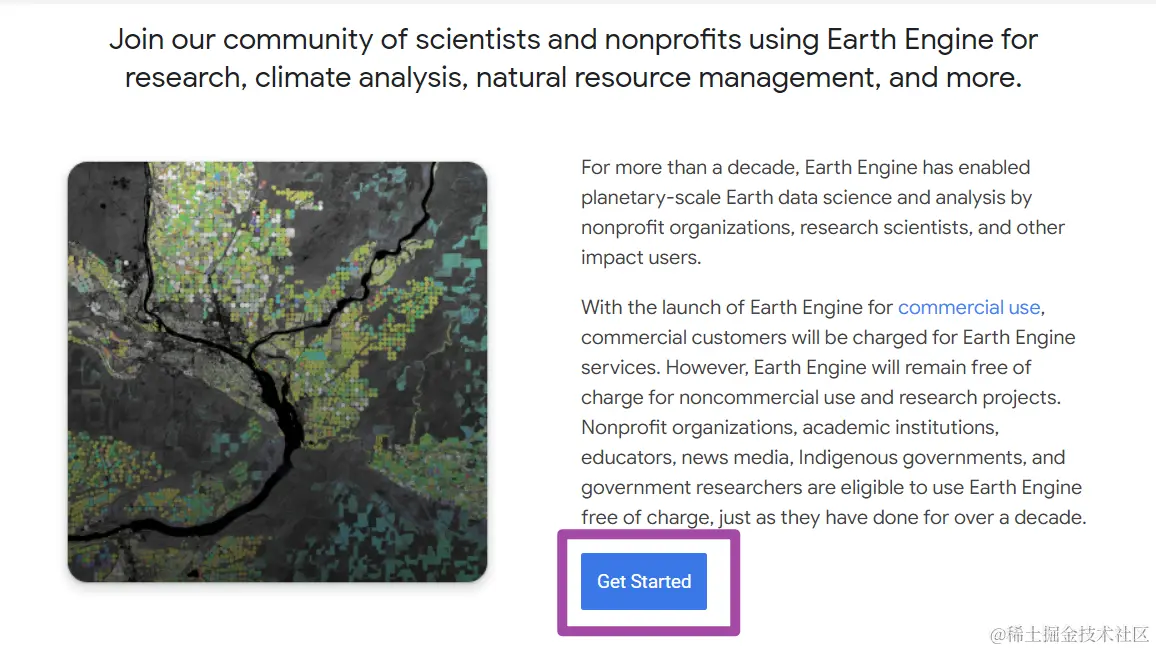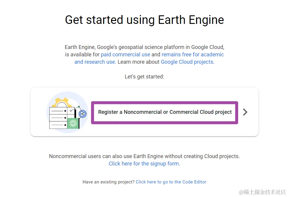 首先,我们访问GEE的官网,并选择点击如下图所示的“Noncommercial”选项。