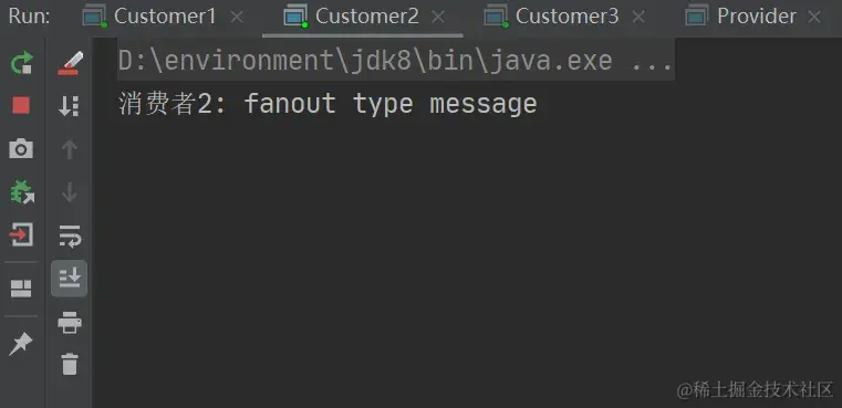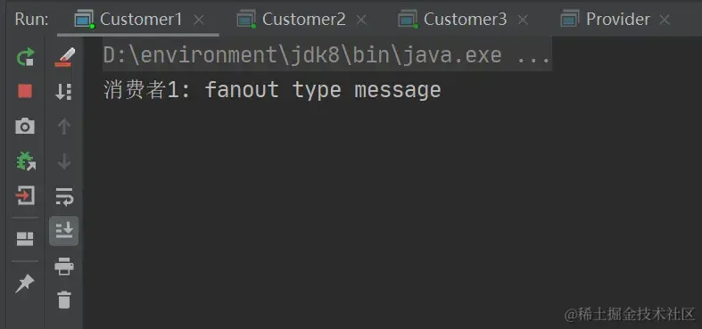 channel.basicPublish("logs","",null,"fanout type message".getBytes());