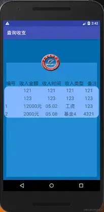 private void initView() { //建立数据库访问对象 MoneyDAO dao=new MoneyDAO(getApplicationContext()); //打开数据库 dao.open(); //调用数据库访问方* *ist> mOrderData=dao.getAllIncome(); //获取组件 listView=(ListView)findViewById(R.id.list_income); //定义数据源 String[] from={"id","money","date","type","note"}; //定义布局控件ID int[] to={R.id.tv_lst_orderid,R.id.tv_lst_username,R.id.tv_lst_name,R.id.tv_lst_price,R.id.tv_lst_amount}; SimpleAdapter listItemAdapter=new SimpleAdapter(QueryActivity.this,mOrderData,R.layout.item_list,from,to); //添加并显示 listView.setAdapter(listItemAdapter); //关闭数据库 dao.close(); }