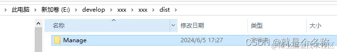 第三步:我服务器上新建Manage文件夹,我们需要把我们的dist的内容包放到Manage文件夹下