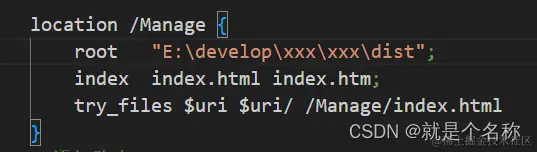 try_files $uri $uri/ /Manage/index.html;