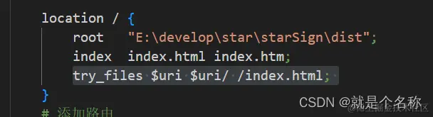 根据常规代理完成后,我们发现,在浏览器里直接输入 localhost:8088/home找不到页面,这样导致直接跳转vue路由失败!如果配置多个路由需要其他页面嵌套或者 打开多个窗口就会出现问题,这里我们需要配置nginx 的一个try_files 属性即可解决: