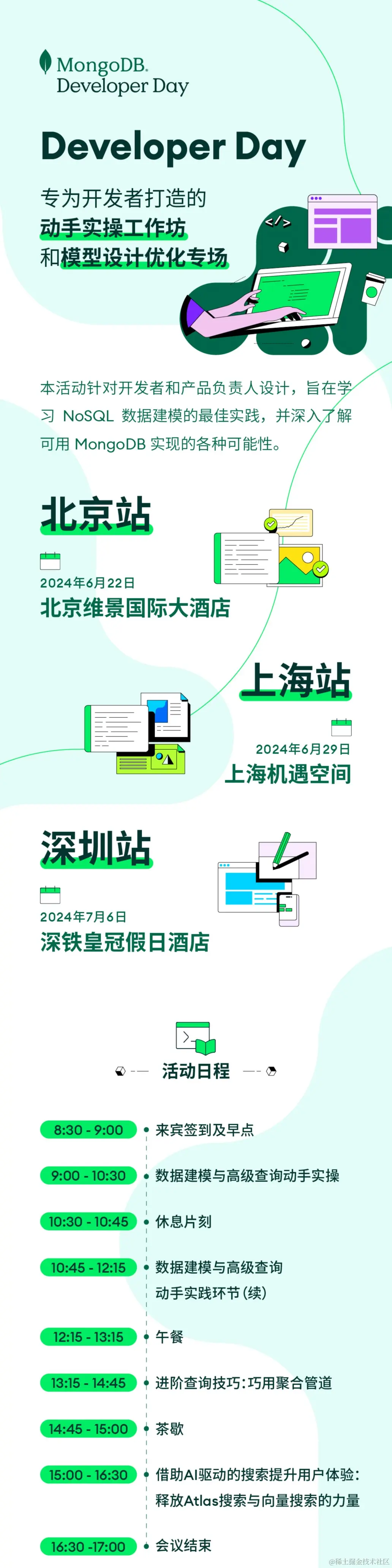 点击预约 MongoDB Developer Day(北京 / 上海 / 深圳)模型设计优化专场