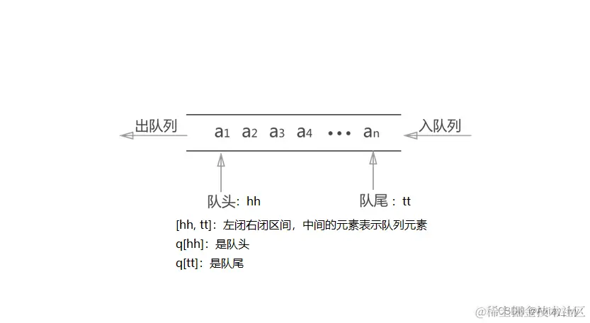 [hh, tt]左闭右闭,代表队列中元素所在的区间。 -