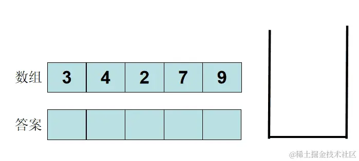 用单调递增栈,当该元素可以入栈的时候,栈顶元素就是它左侧第一个比它小的元素。 以:3 4 2 7 5 为例,过程如下: