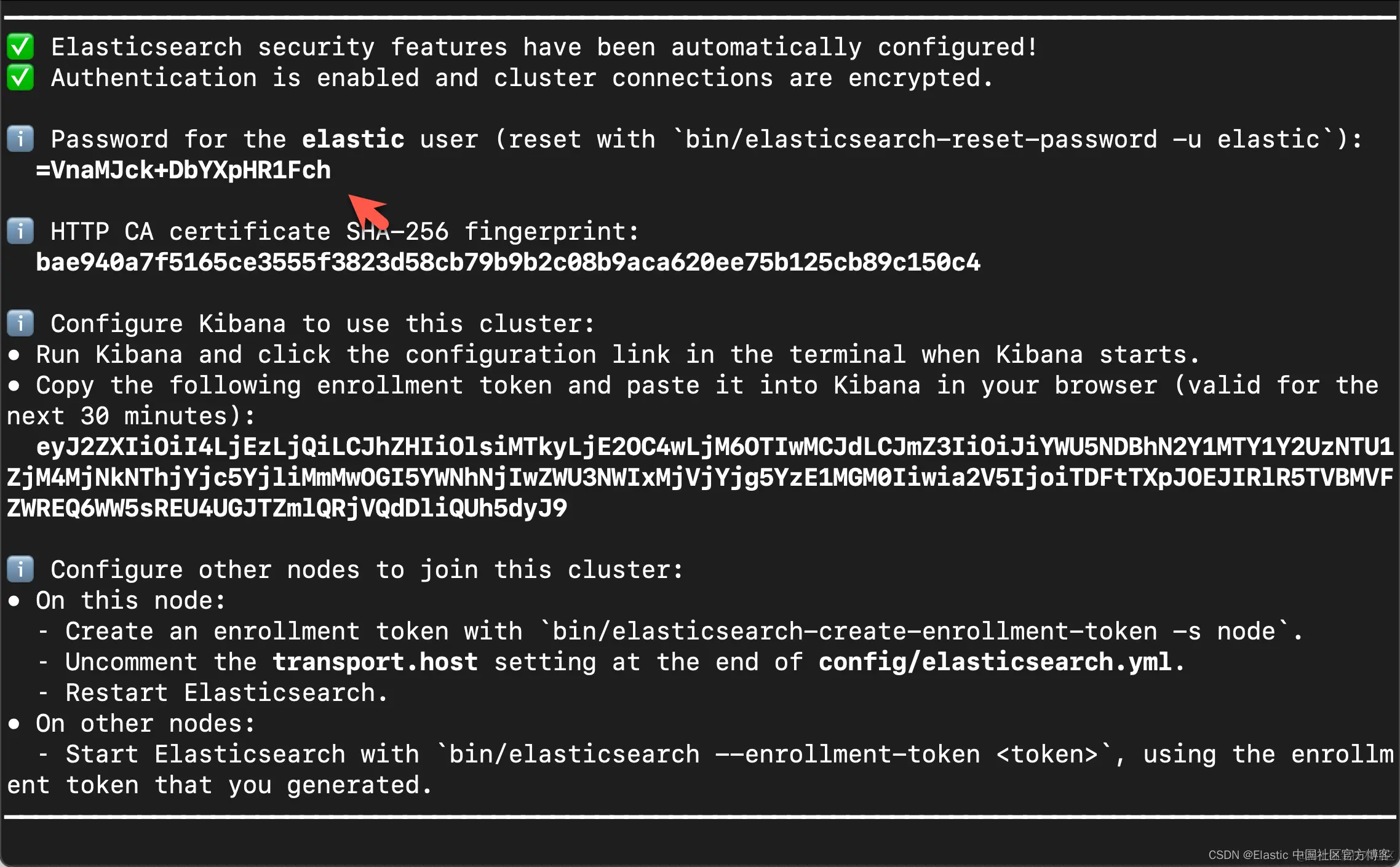 我们需要记下 Elasticsearch 超级用户 elastic 的密码。