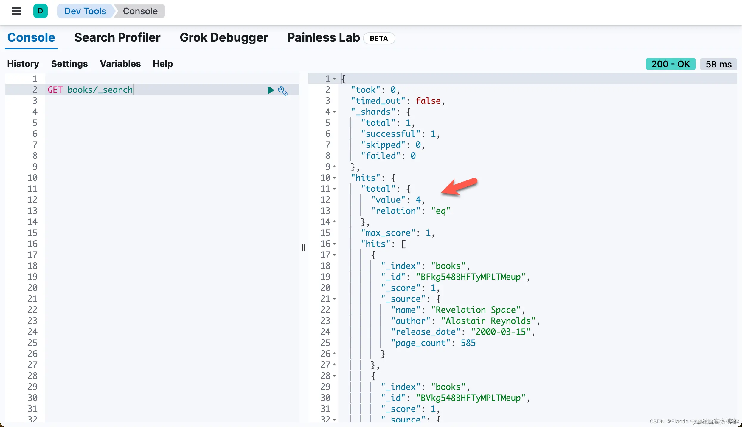 1. const response = await client.esql.query({ query: 'FROM books' })