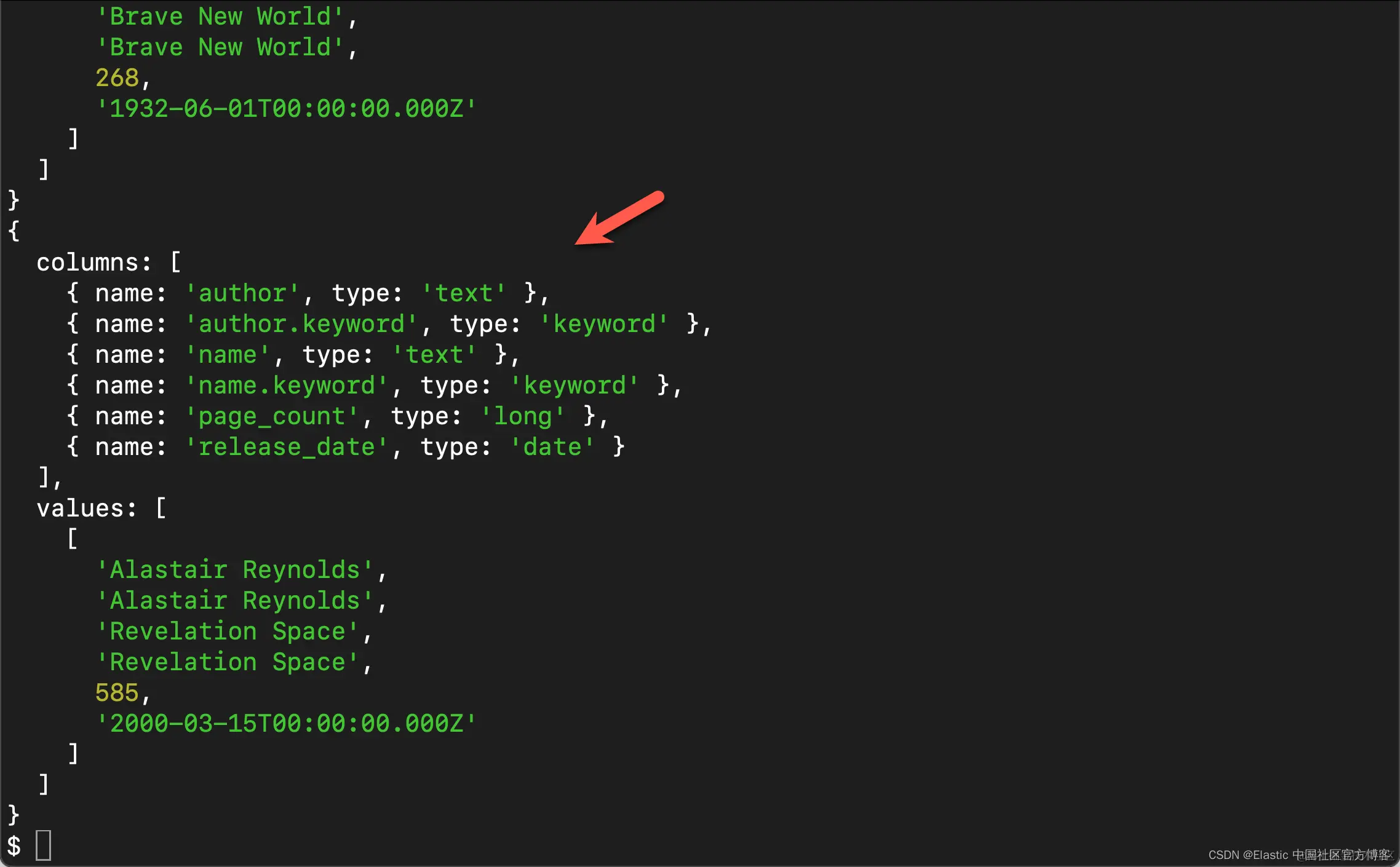 46. const response = await client.esql.query({ query: 'FROM books' })