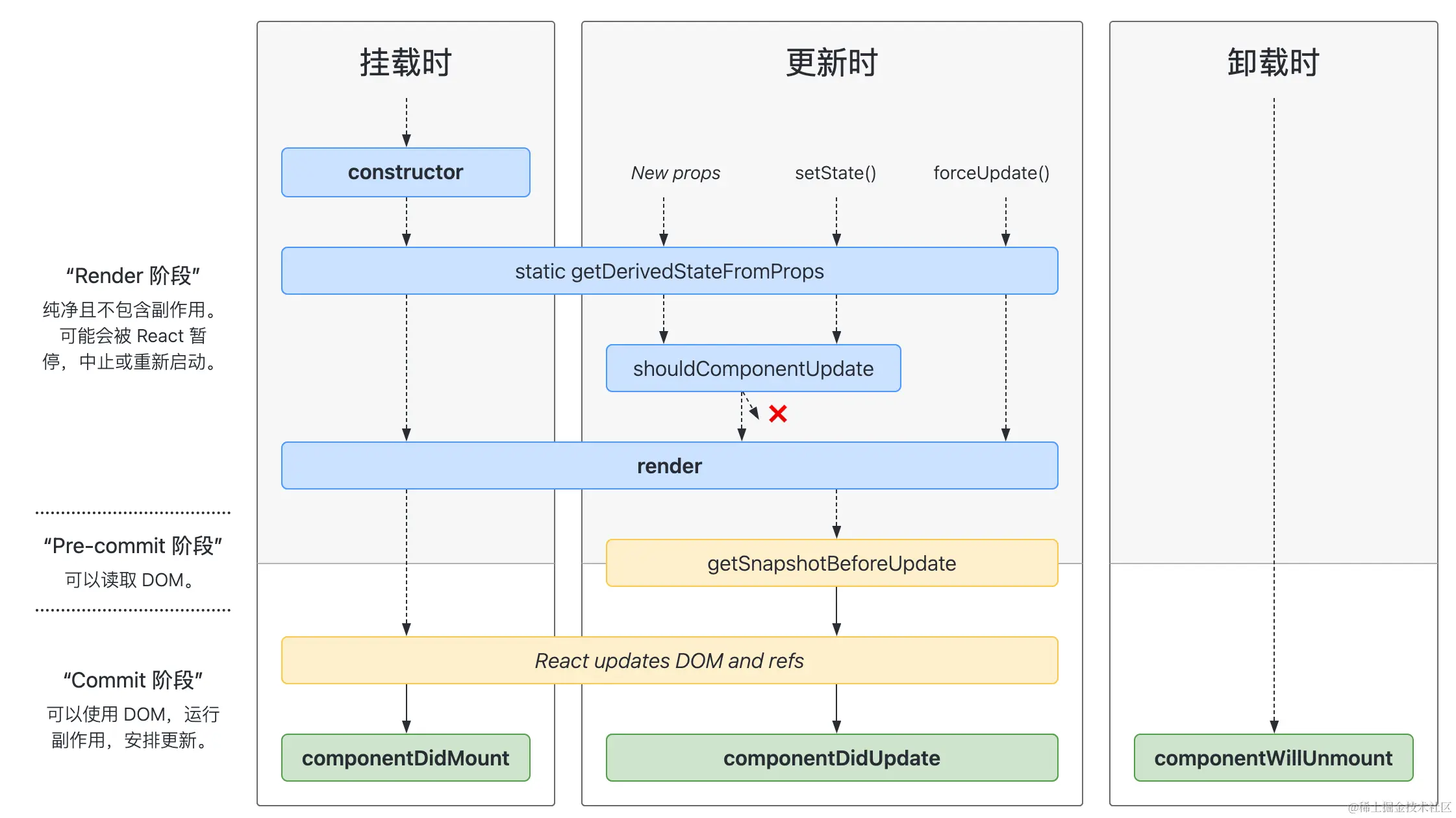 上面回顾了一下React15生命周期的流程,下面来详细讲讲React16的变化与革新:图片引自开源项目