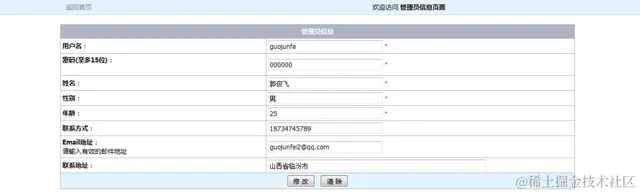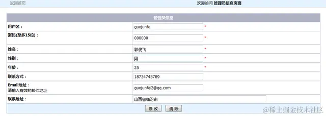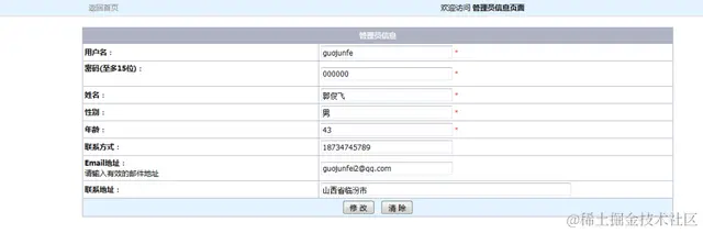 当在操作中,进入到系统中的这个模块时,可以查看到本人的所有登录信息。可以对此模块中的所有的信息都进行修改操作,然后在对所作出的操作进行更新。