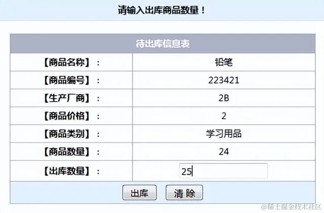 图6-6 铅笔出库信息图