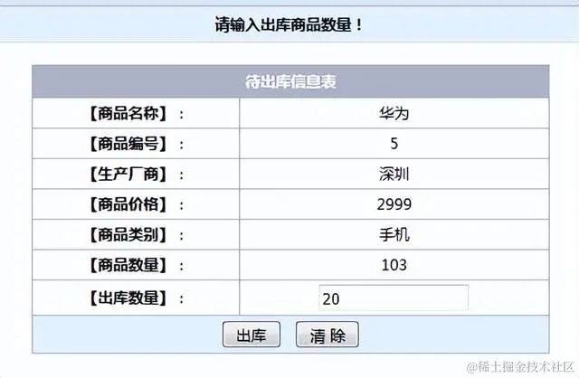 以华为手机出库为例先存量为103,出库数量20(如图6-4所示):