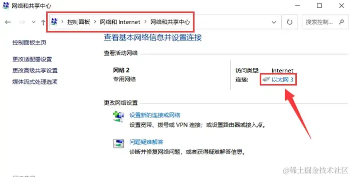 步骤1:在电脑上通过**【Win+i】打开【设置界面】,搜索【控制面板】并打开,选择【网络和Internet】-【网络和共享中心】**选项。