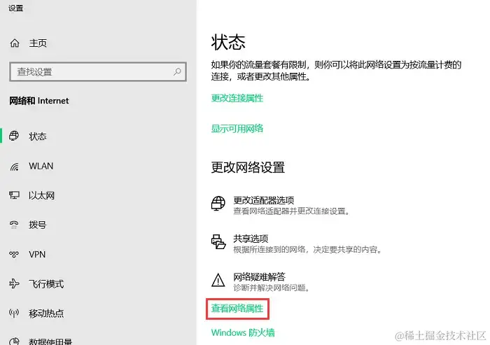 步骤2:在**【状态】界面下拉,找到并点击【查看网络属性】**。