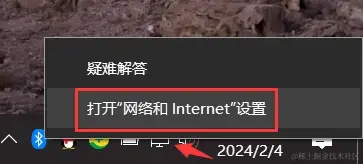 步骤1:在电脑桌面右下角找到**【网络】图标并点击它,然后点击弹出窗口中的【网络和Internet】**选项。