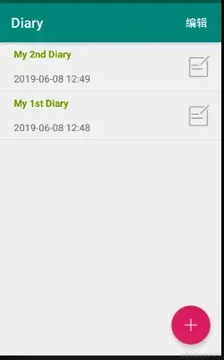 - 点击列表项中的编辑图片按钮,界面跳转到日记新增编辑界面(DiaryInfoActivity)。(5分)