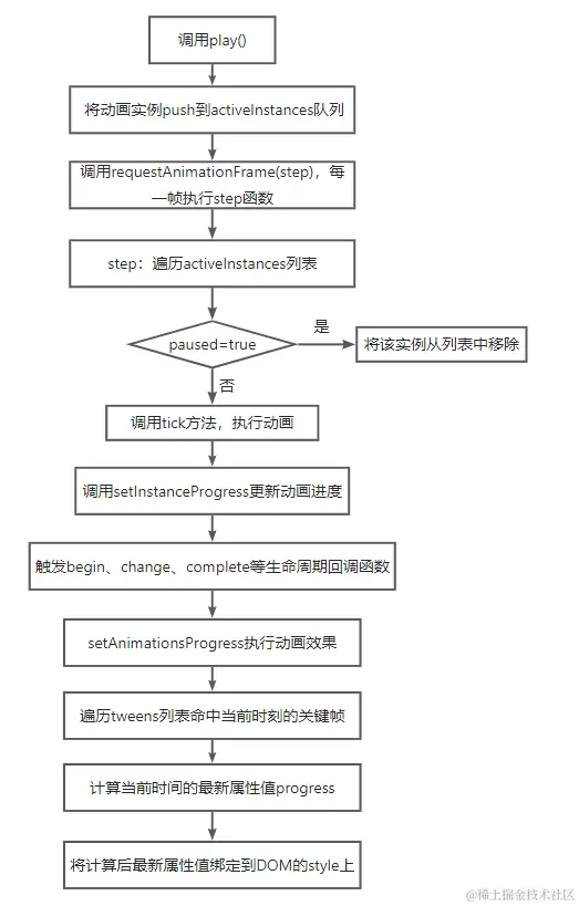 Anime.js 的实现方式就是属于补间动画,实现原理涉及到使用 JavaScript 操作 CSS 属性,并使用 requestAnimationFrame(RAF)来实现流畅的动画效果。