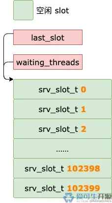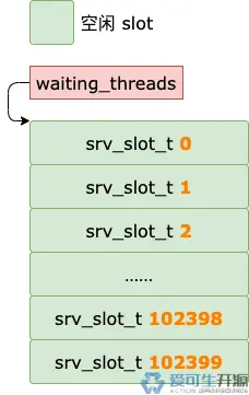 然而,通常情况下,waiting_threads 属性指向的内存区域中的 102400 个 slot,其中大部分都是空闲的。