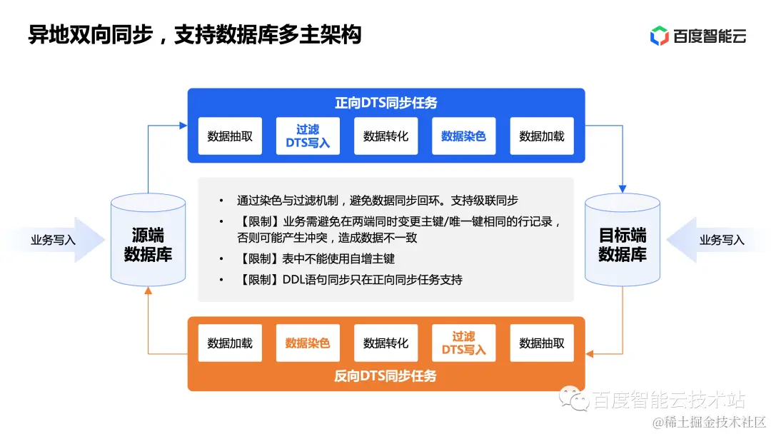 跨地域多活同步:DTS 支持 MySQL/GaiaDB 双向同步。