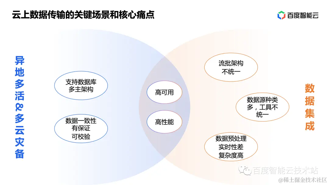 我们在前面介绍了同步/集成方向的三个典型业务场景:异地多活、多云灾备和数据集成。其中,高可用和高性能是这些场景共同需要的关键能力。