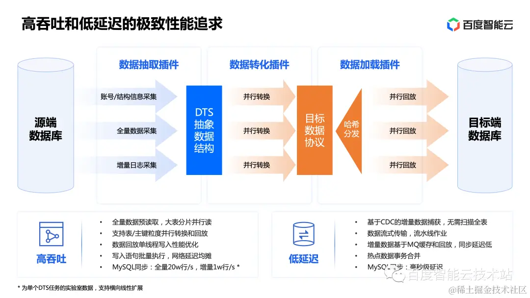 首先是高吞吐,DTS 具有如下的特点: