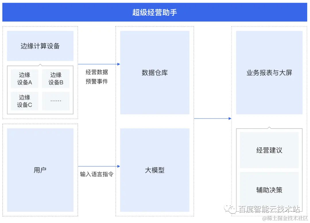 除此之外,大模型还为管理者提供了「超级经营助手」,对边缘服务器 ECS 收集到的业务数据进行智能分析并提供经验建议。