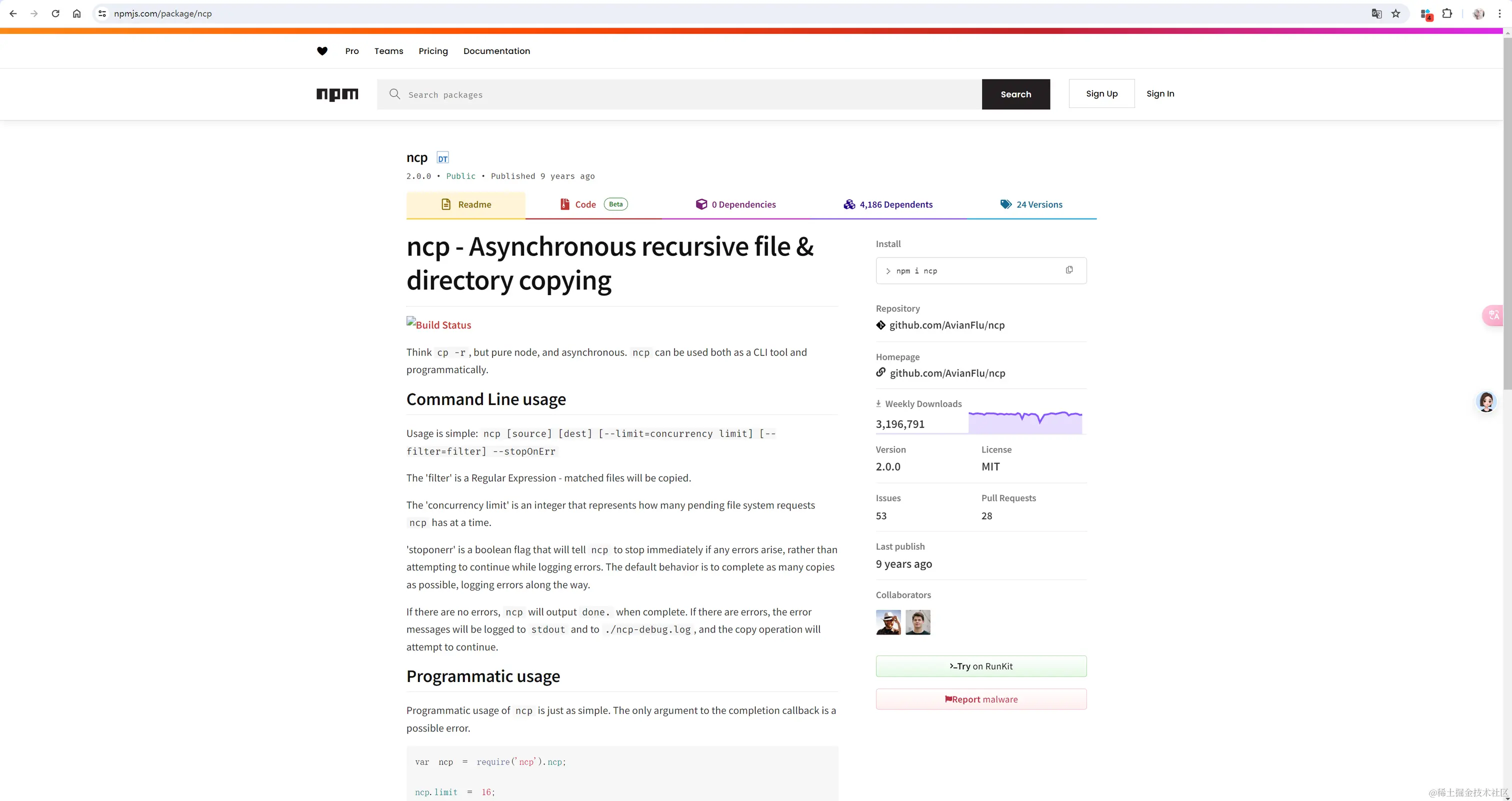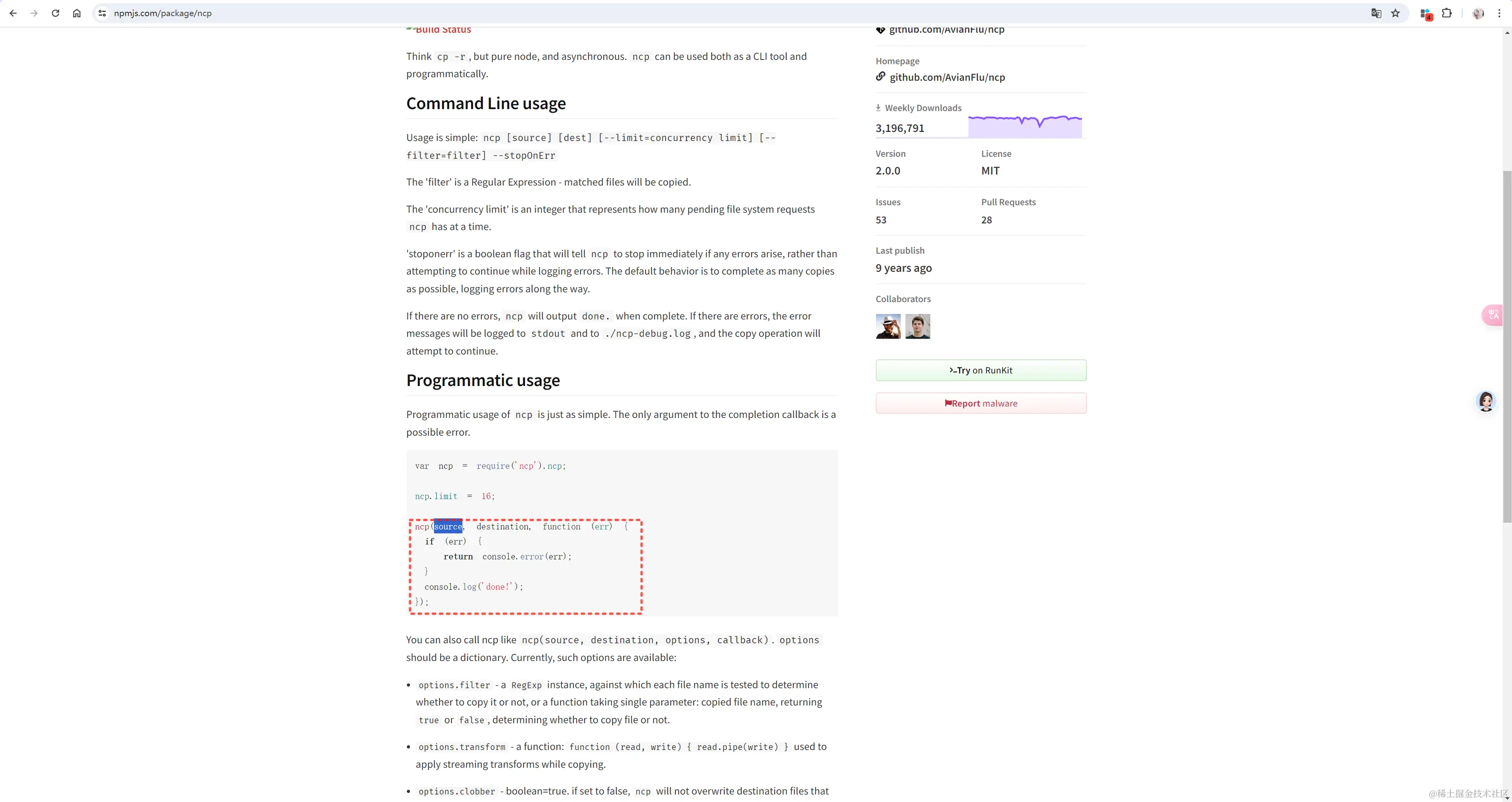 npm 地址:ncp