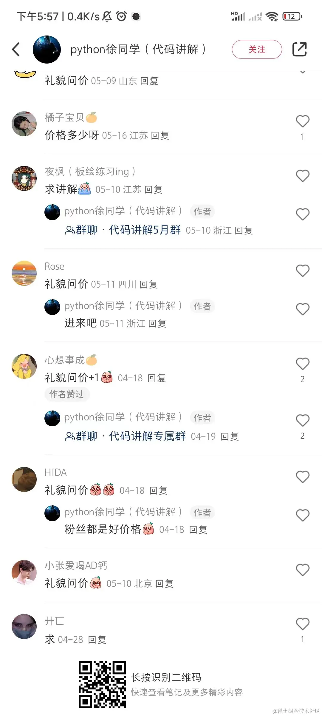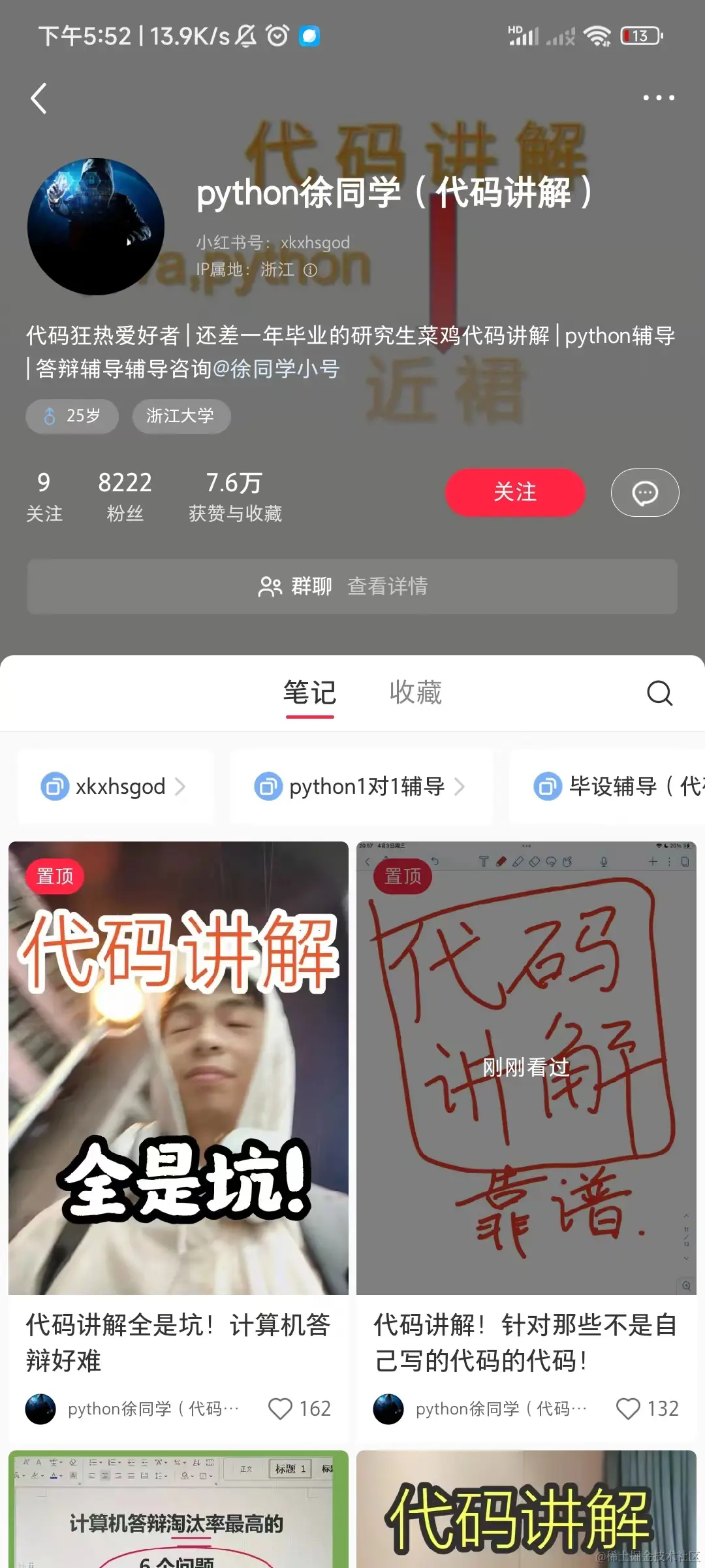 1、博主先在小红书发布了差不多半年多的python方面的干货内容以后,然后开始发作业培训和代码讲解等方面的内容。(请注意,博主不是上来就发代码讲解等内容,很多人上来就发代码讲解这种引流内容,很容易被官方封号)