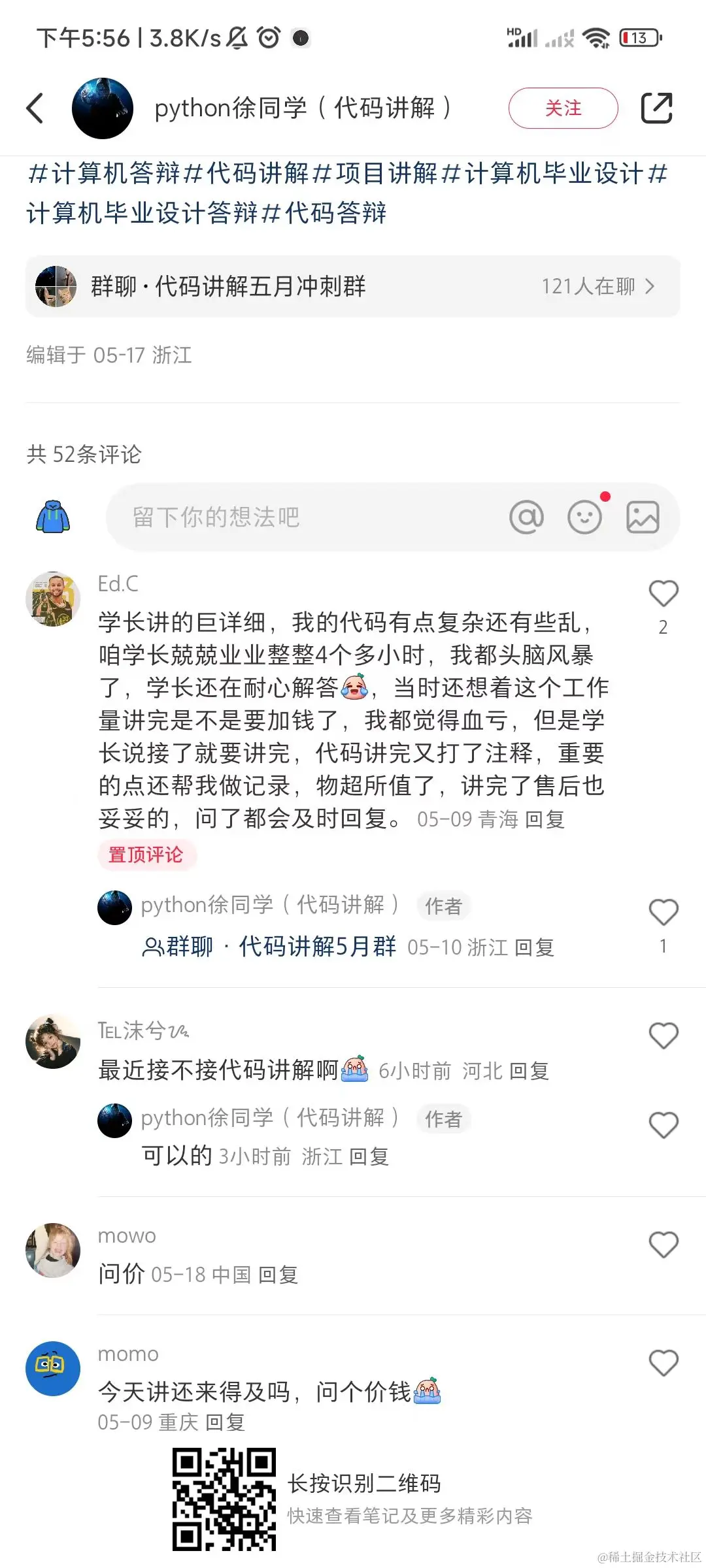 最近在接单互助群内,发现一类单子还挺多,就是代码讲解单子,简单说,就是给人讲解代码,然后收取一定费用。