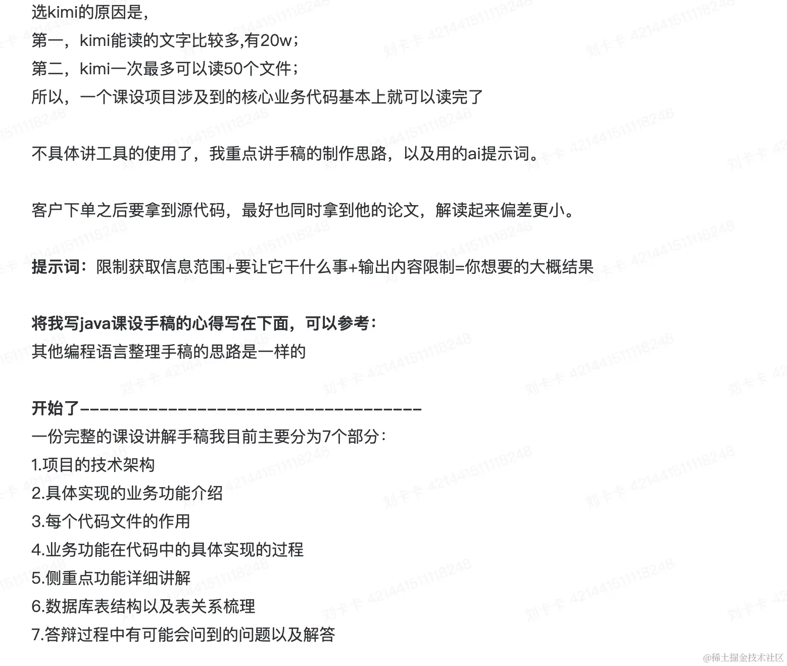 5、可以借助Kimi等AI工具去完成基础的代码讲解工作,极大的提高代码的讲解效率。关注这部分的内容,在AI破局社群上有几个案例,本文就不详细说了