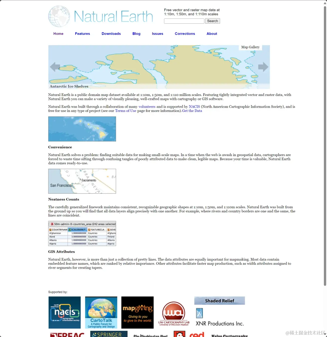 Natural Earth是一个公共领域的地图数据集,可提供1:10m、1:50m和1:1.10百万的比例尺。凭借紧密集成的矢量和光栅数据,使用Natural Earth,可以使用制图或GIS软件制作各种视觉愉悦、制作精良的地图。