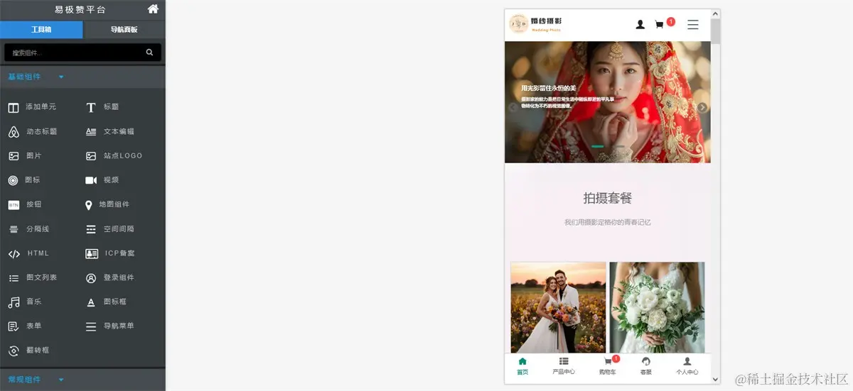 step2, 一键生成婚礼策划小程序商城,进入可视化编辑器可以对站点文案图片进行修改