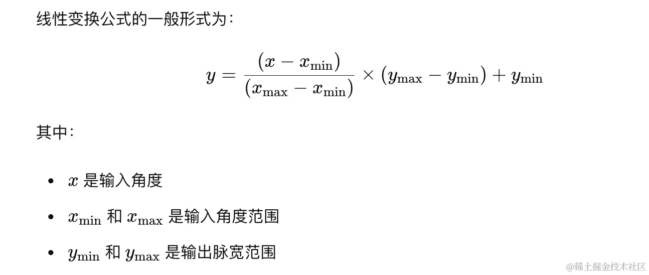角度到脉宽的线性变换公式: