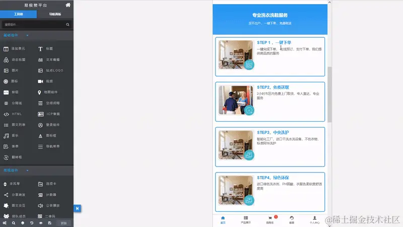 step2, 一键生成洗涤护理门店小程序商城,进入可视化编辑器可以对站点文案图片进行修改