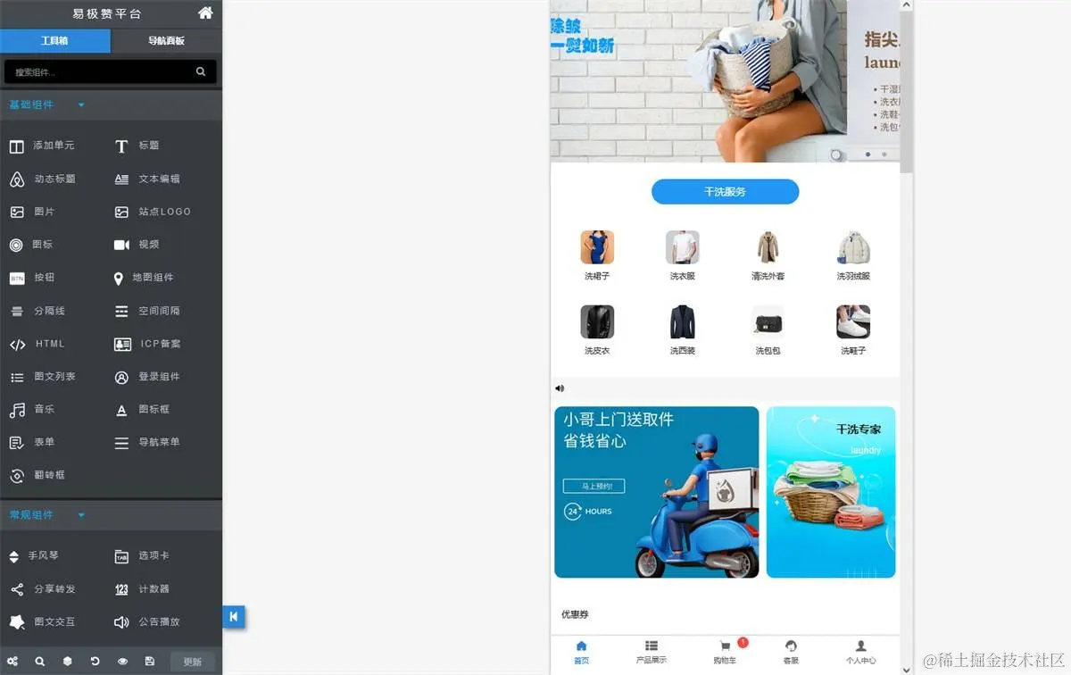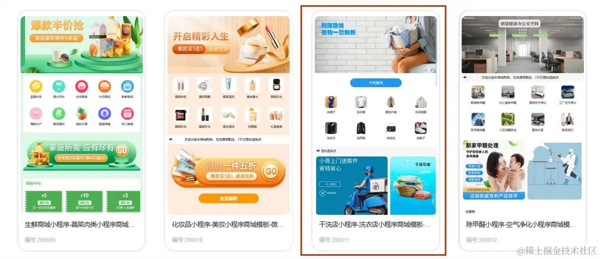 step1, 在「易极赞」的小程序模板中,选中洗涤护理门店小程序模板,一键即可生成发布自己的品牌设计小程序
