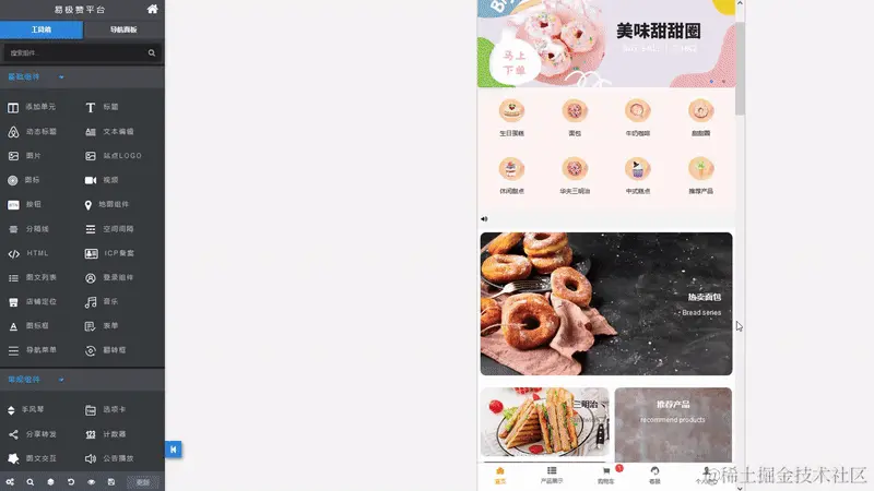 step3, 在线编辑修改站点内容,设计完成后,点击发布这样一个蛋糕店小程序就制作完成了