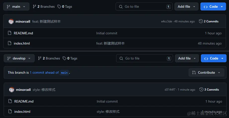 一般来说,我们在进行开发时,往往分成两个分支:main分支和develop分支。