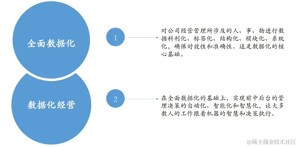 2、数据化经营:在全面数据化的基础上,实现前中后台的管理决策的自动化、智能化和智慧化,让大多数人的工作跟着机器的智慧和决策执行。