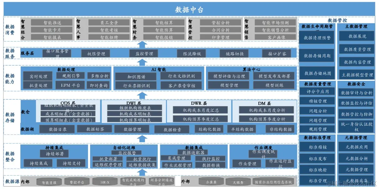 数字化经营管理方案:数据中台,数据全链打通,为前台应用提供支撑,创造业务价值。