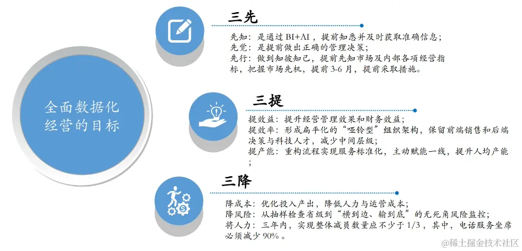 全面数据化经营的目标:“三先、三提、三降”。