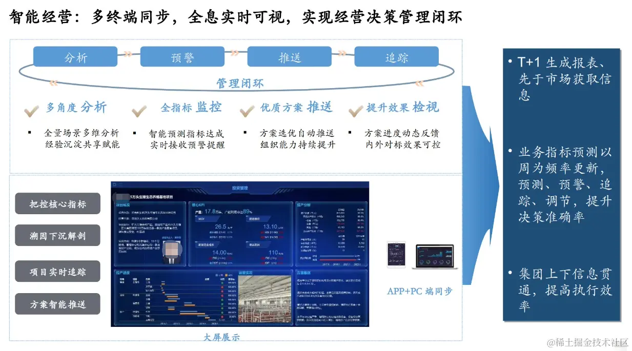 智能经营:多终端同步,全息实时可视,实现经营决策管理闭环。