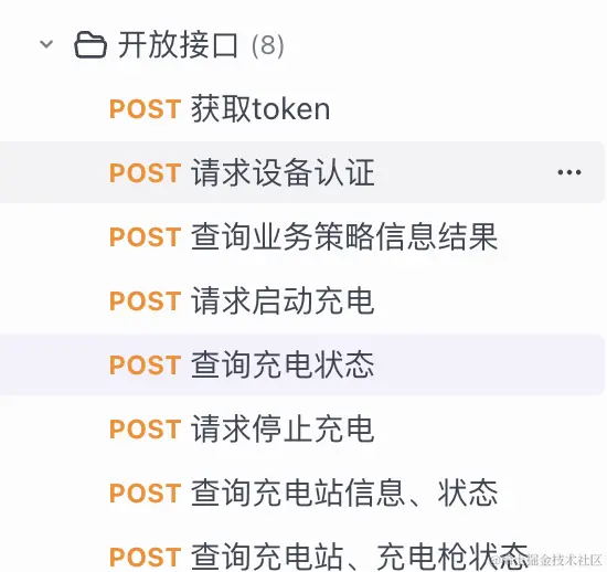 根据中电联的标准,包含14个标准接口服务,目前开放出去的8个接口+2个推送接口。接口的全名、参数见中电联协议 T/CEC 102.2-2016、T/CEC 102.3-2016.