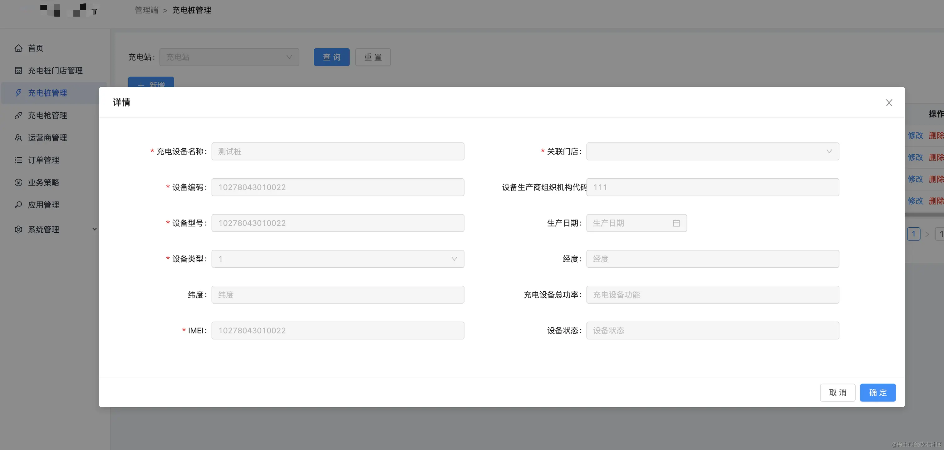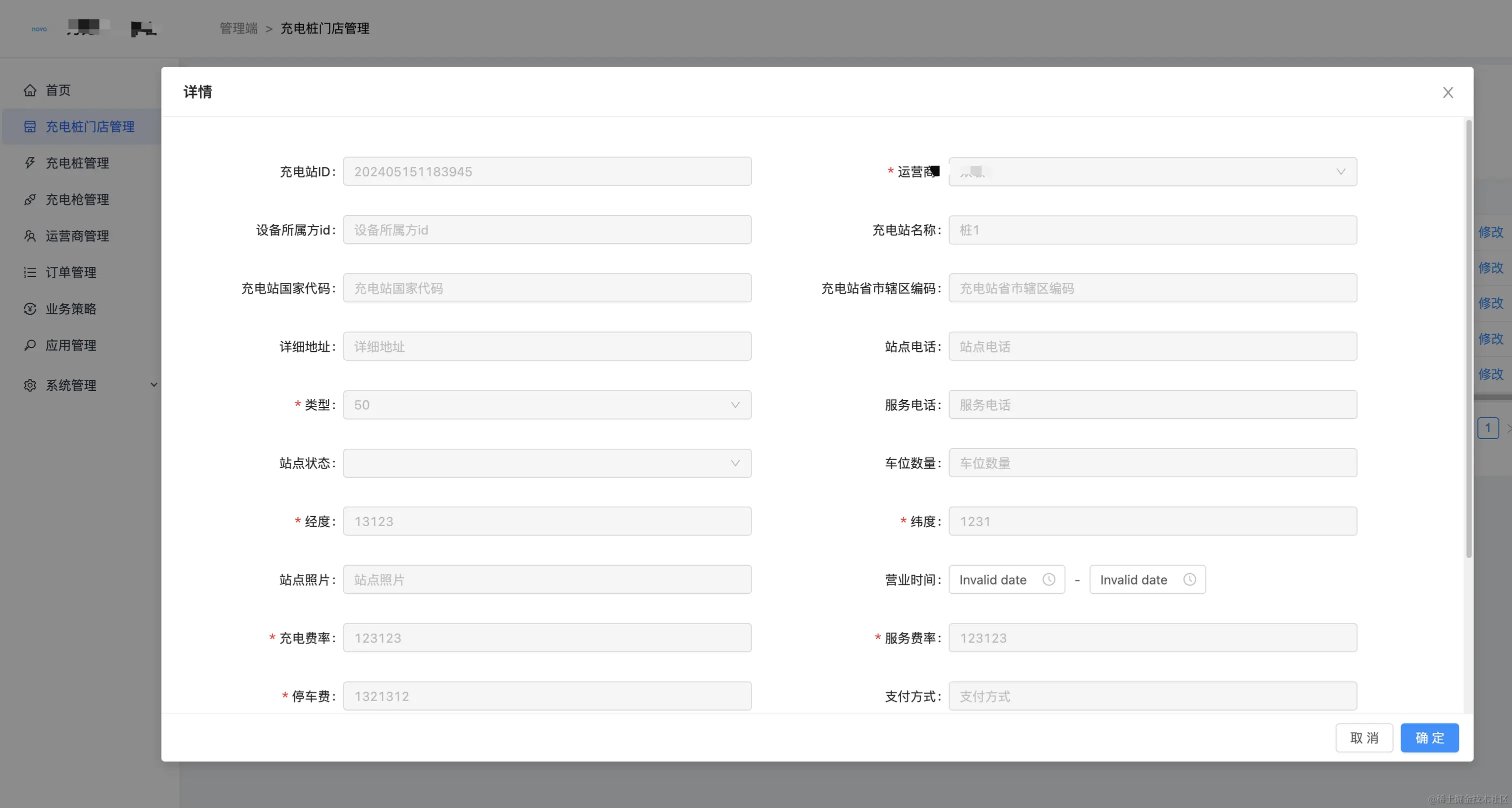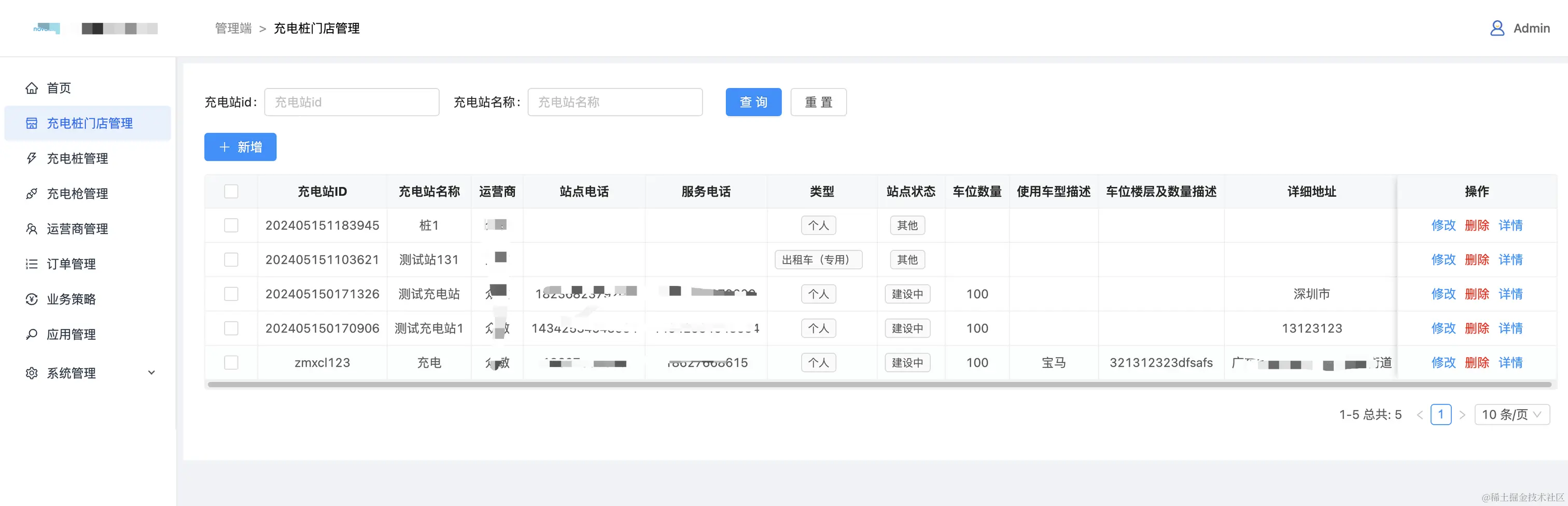 充电站管理模块,运营商登录进来,可以管理与自己合作的充电站,桩企账号登录进来则也是管理与自己合作的充电站,平台账号登录进来管理所有充电站。