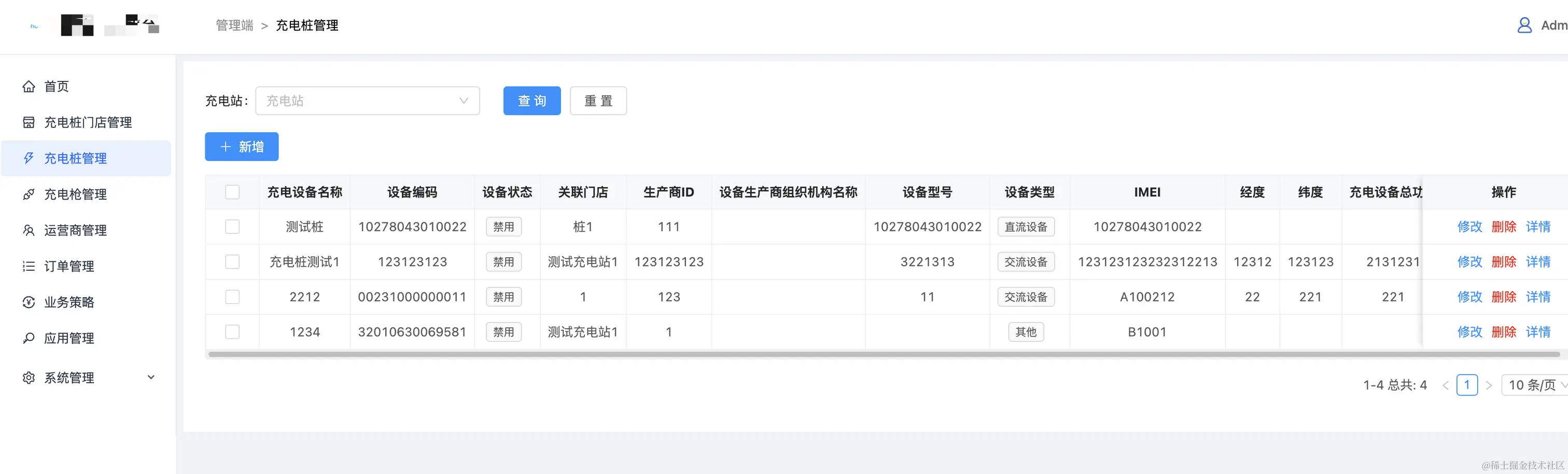 充电桩的管理:实现平台内所有桩的在线状态、各桩交易数据的统计服务。本平台是多租户平台,运营商、桩企、商户不同身份的账号登录进来,都可以运营与自己有关联的充电桩。