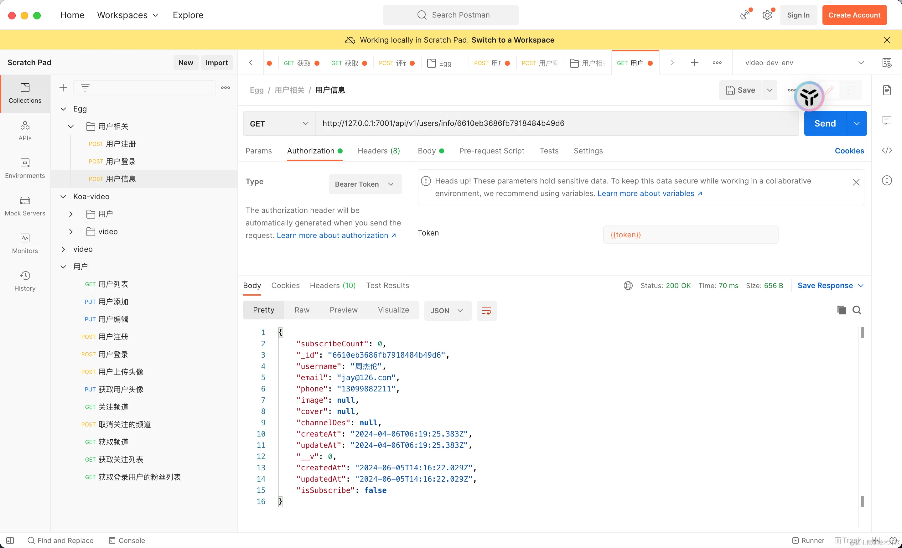 http://localhost:7001/api/v1/users/info/{userId}。 - 检查返回的数据,验证用户信息和订阅状态是否正确。