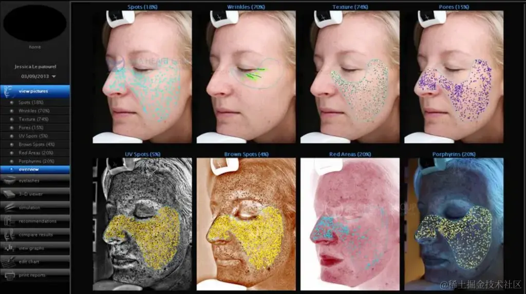 - 美容和护肤应用:皮肤分析API可以帮助用户分析肌肤类型、色素沉积、皱纹程度、毛孔大小等皮肤特征。